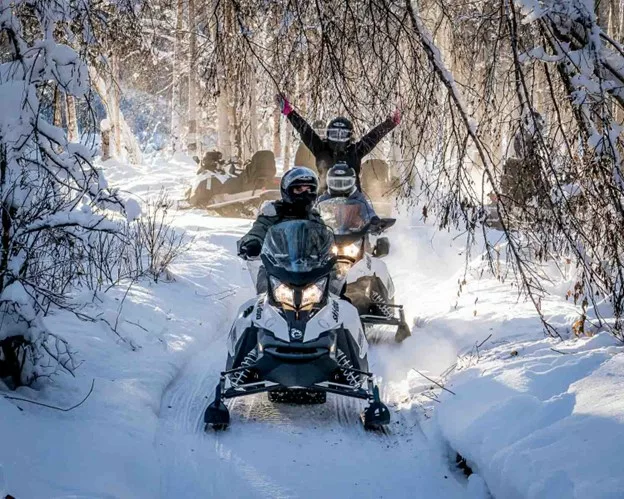 Explore the wilderness of Alaska by snowmobile. Be able to drive your snowmobile through amazing scenery and keep your eyes peeled for wildlife as it is not uncommon to see moose and other wildlife while you are on your excursion.
